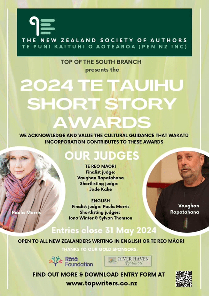 Te Tauihu Short Story Awards are open to all Aotearoa, New Zealand writers. The New Zealand Society of Authors Top of the South Branch administers the competition sponsored by the Rata Foundation and River Haven Ngatimoto.